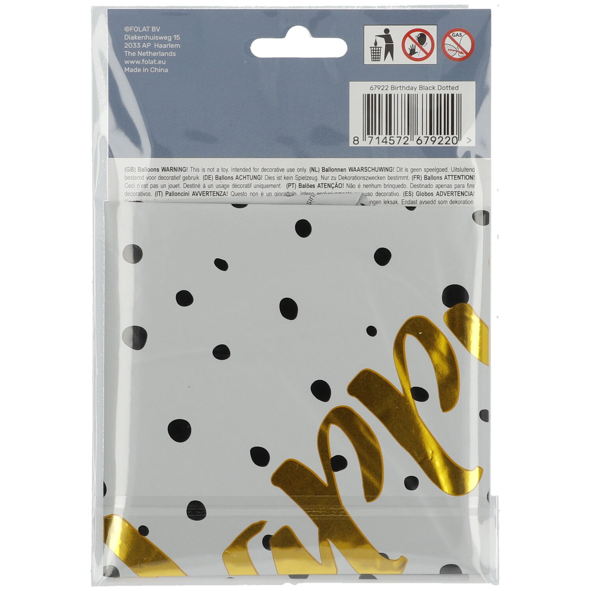 Folat ist niederländischer Spezialist für Partyartikel – «We deliver smiles» seit Jahrzehnten. Folienballons werden aus mylar-beschichteter Folie hergestellt, halten Helium deutlich länger als Latexballons (typisch 3–5 Tage statt 12 Stunden) und sind die nachhaltige Wahl für Foto-Hintergründe und Themenpartys.