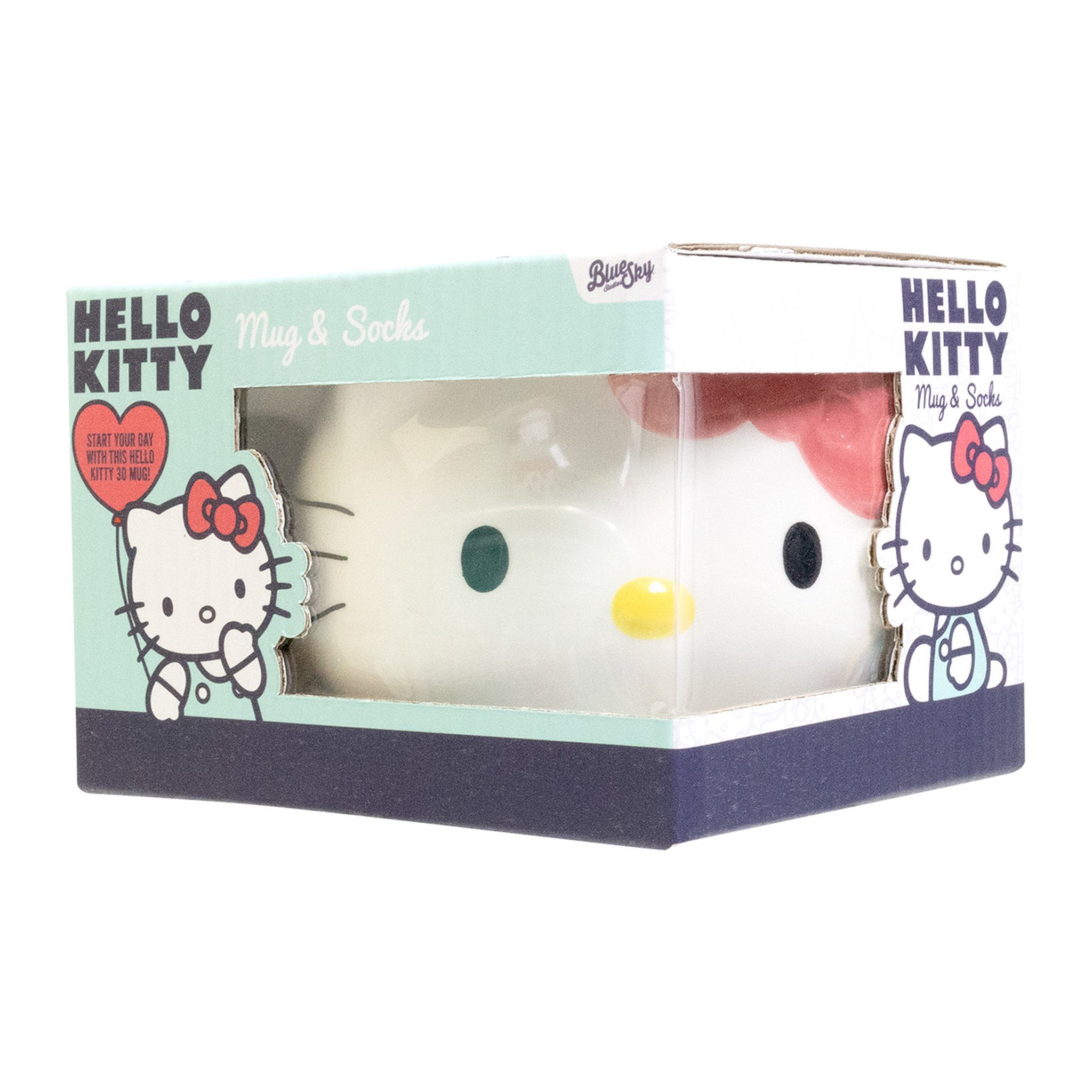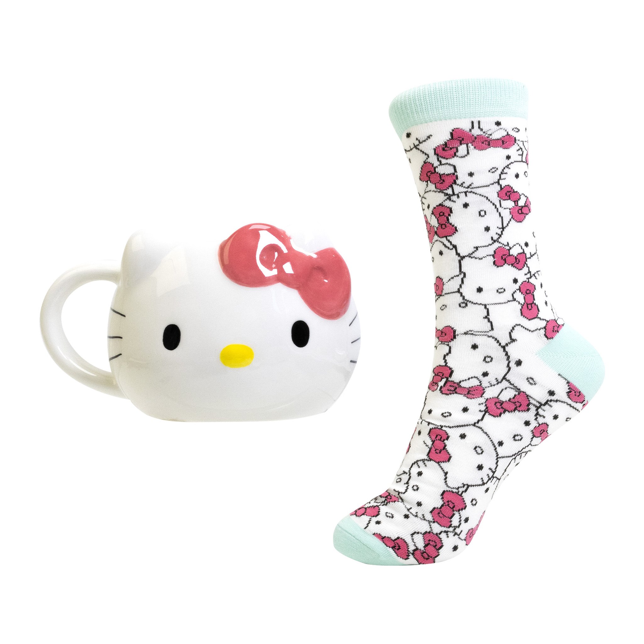Hello Kitty Mug & Socks Gift Set – Kawaii charm to give as a gift! Mug with Hello Kitty face and red bow plus cosy socks with Hello Kitty all-over print.