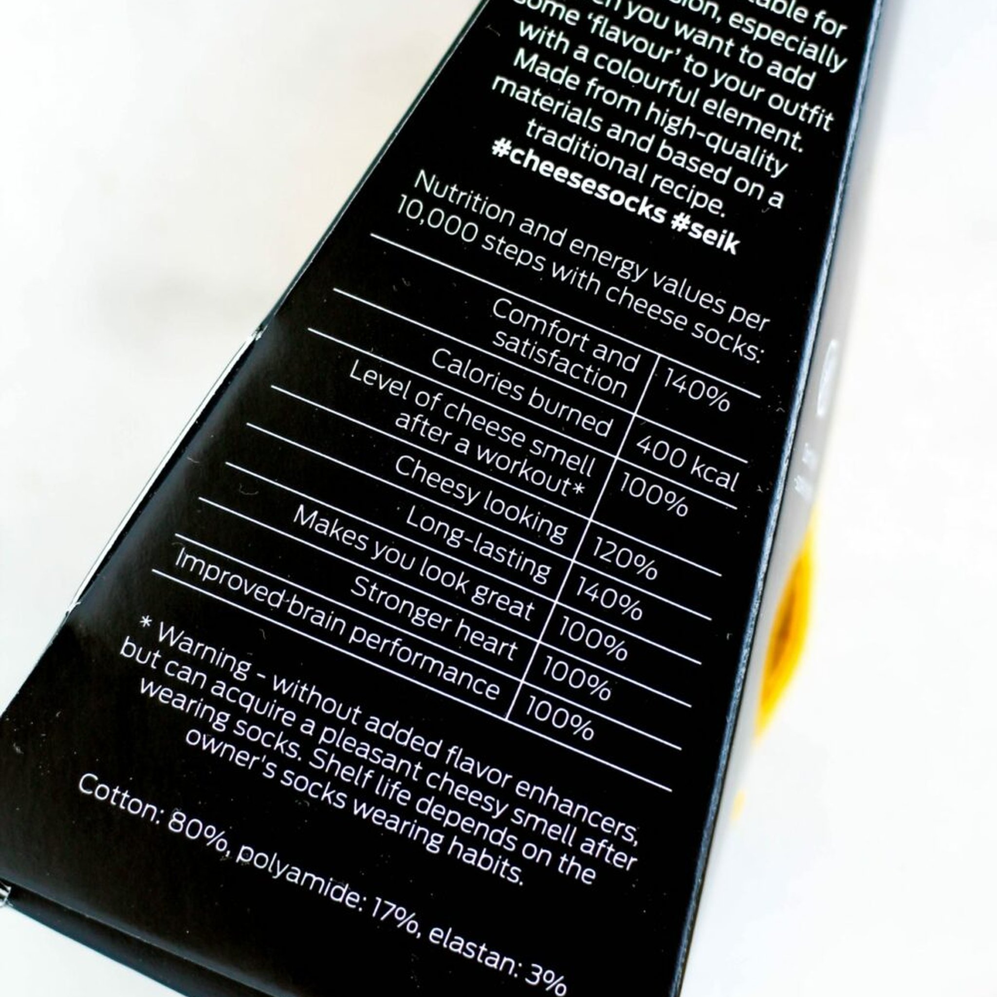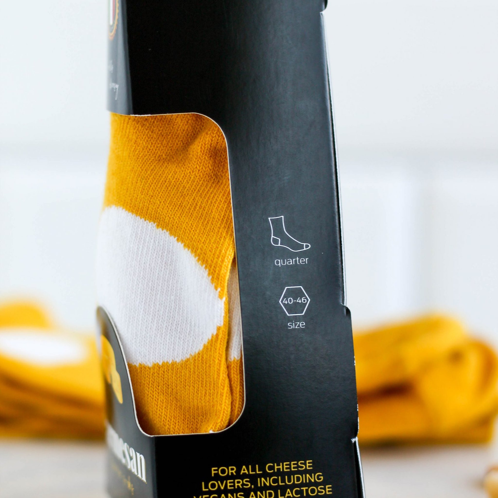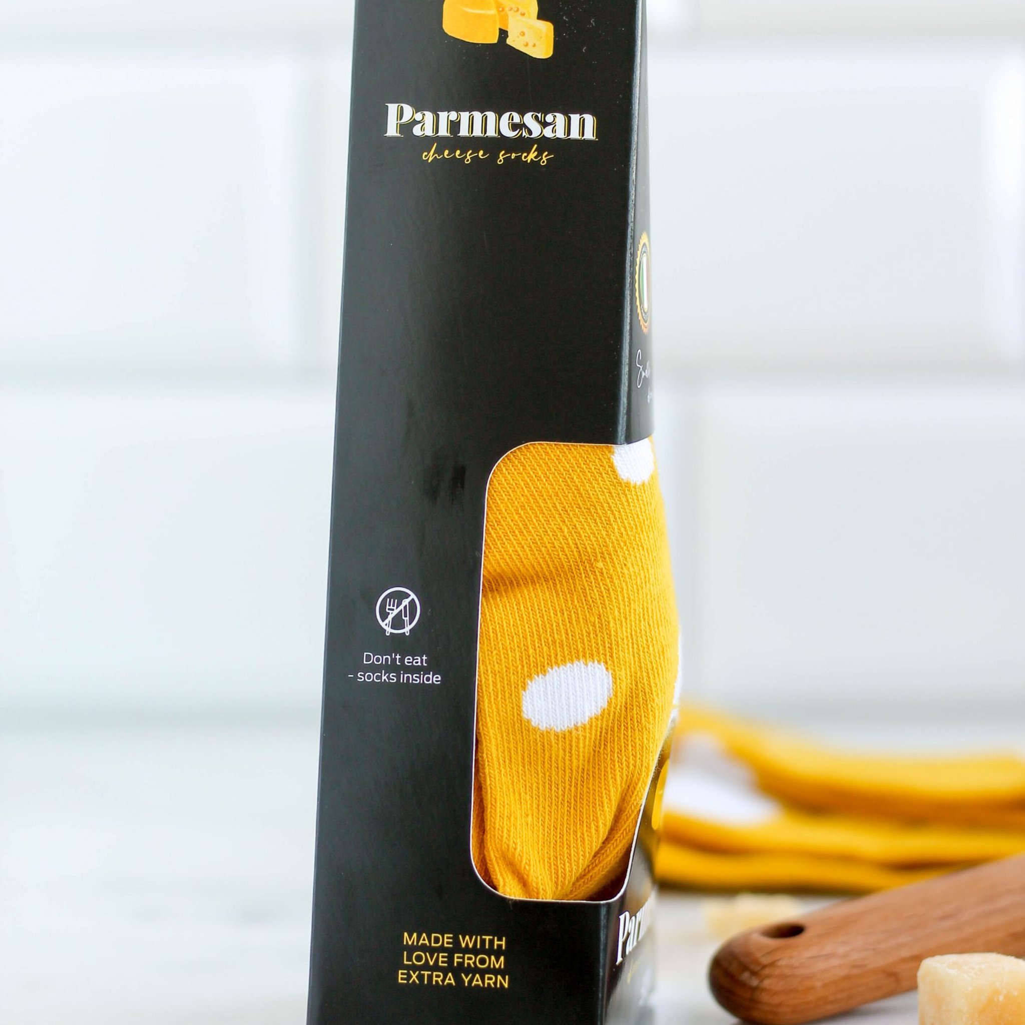 Avec les Chaussettes Parmesan, tu peux donner un twist fromager à ton style, mais sans l'odeur désagréable !