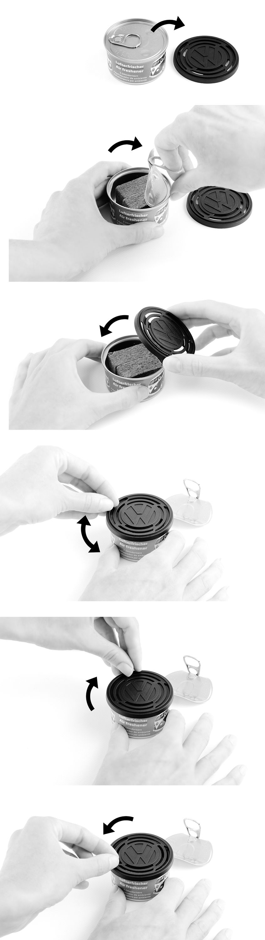 Pour recharger le désodorisant, il suffit d'ouvrir la boîte à l'onglet et de remplacer le régulateur de parfum. Vous pouvez ensuite placer la boîte à l'endroit pour qu'elle dégage son délicieux parfum - dans votre voiture, votre camping-car, le garage de votre maison ou votre tente.