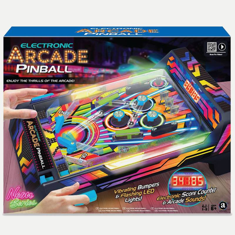 Dieser geniale Space Tischflipper im Retro-Weltraum-Design ist ein tolles Geschenk für alle Arcade-Fans. Er hat alles, was man von einem grossen Flipper kennt. Die sechs Bumper leuchten bei einem Treffer auf und es ertönt einer von acht Arcade-Soundeffekten. Der Spielstand wird durch einen klassischen Flipper-Score ermittelt.